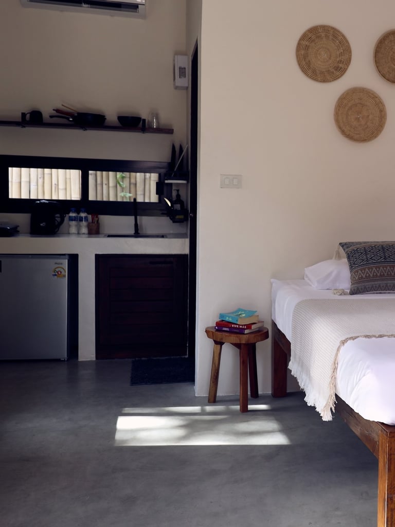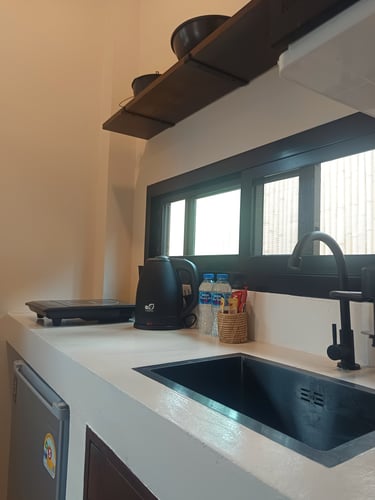 At the bungalow complex, each unit comes with king bed , air conditioning, a kitchenette, a dining area, and a private bathroom with hot water, a walk-in shower, and free toiletries. A Induction Cooker, Fridge are also featured, as well as a Kettle. At the bungalow complex, each unit is equipped with bed linen and towels. And large terrace with beautiful views of the garden.
